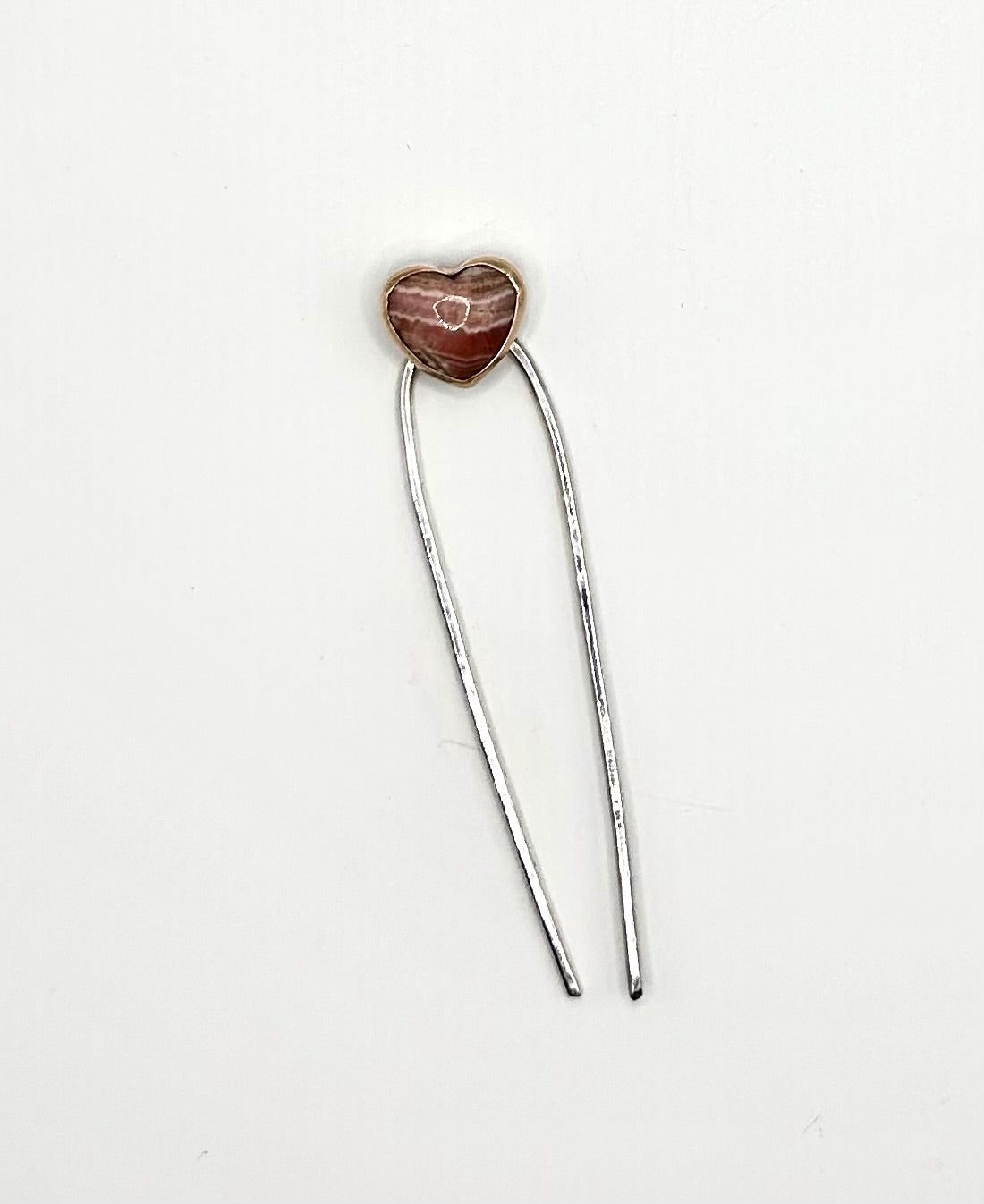 Heart shaped Rhodochrisite stone set in bronze rhodochrisite is the stone of love